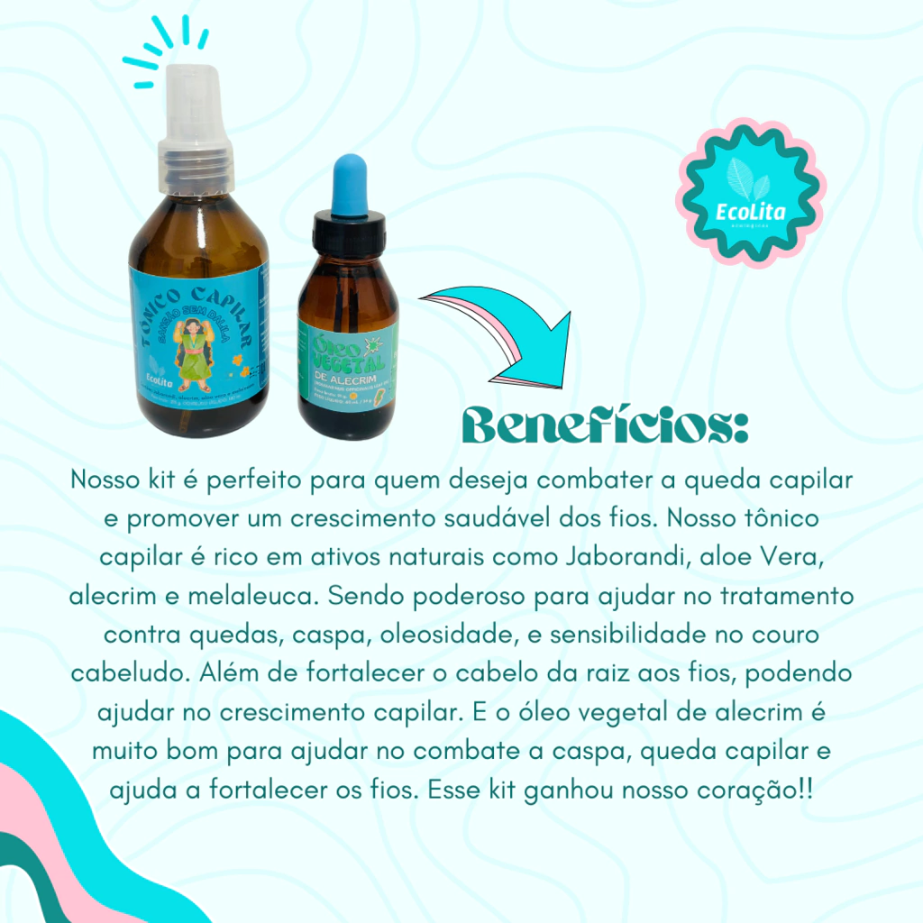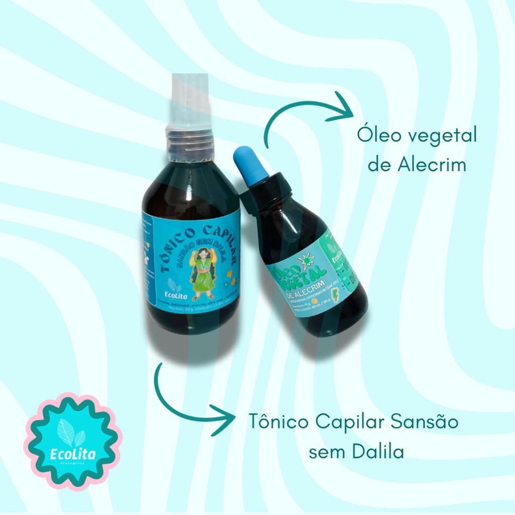 Kit composto por: 1 Tônico capilar Sansão sem Dalila (140ml), e Óleo vegetal de alecrim (40ml).