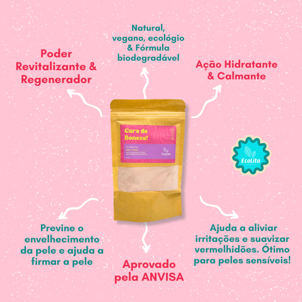 Pele sensível? O Cara de Boneca cuida disso com a suavidade da argila vermelha. Hidrata, nutre e devolve aquele viço natural, deixando você pronta pra arrasar.