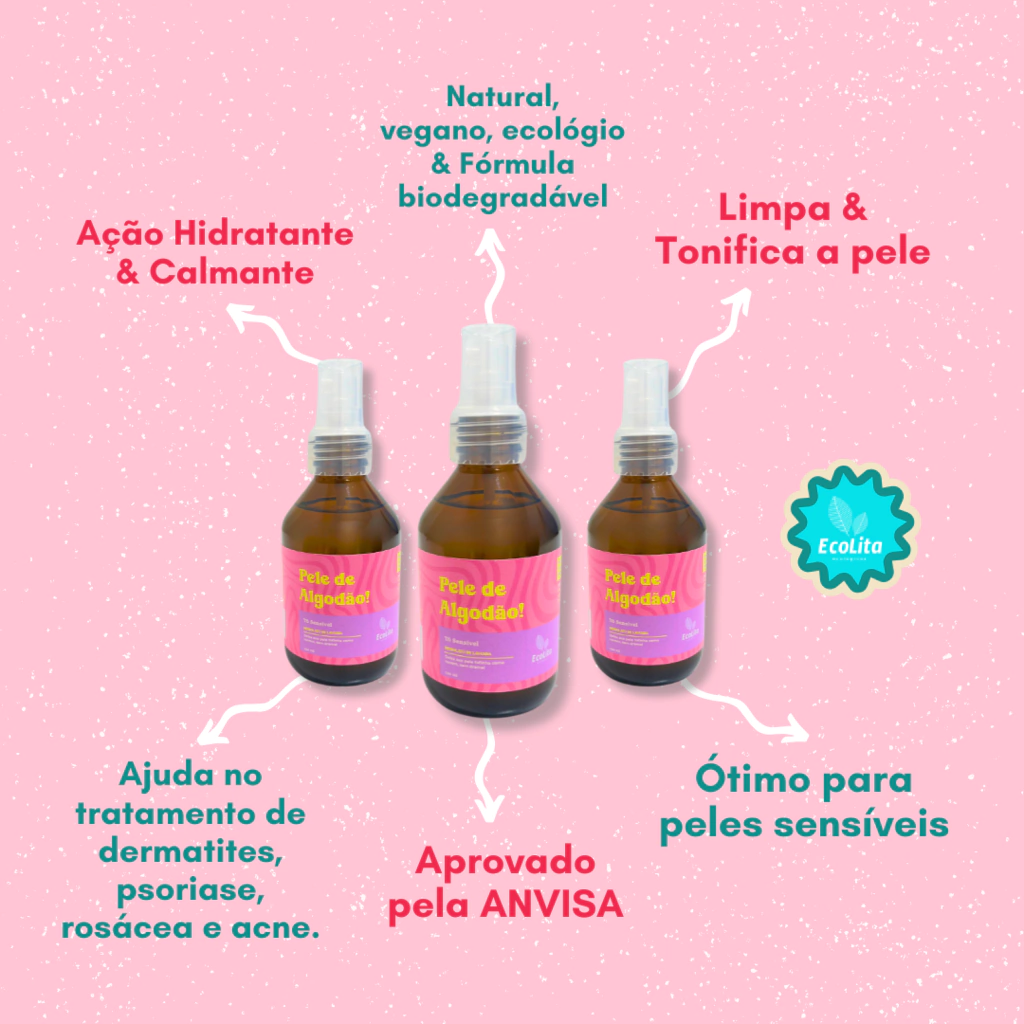 Sentindo a pele gritar por ajuda? Relaxa, o Pele de Algodão é aquele abraço de lavanda que sua pele sensível precisa. Hidratação e suavidade em cada borrifada.
