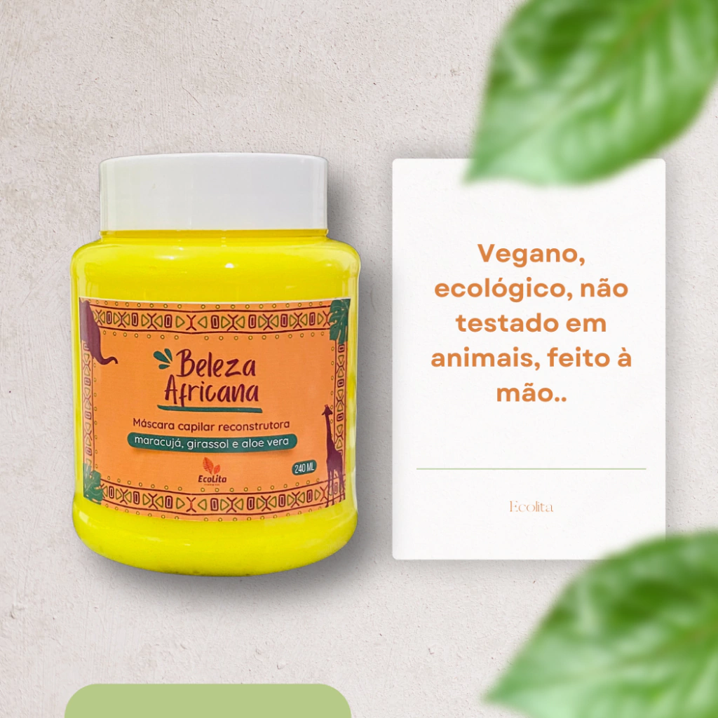 Benefícios: Essa máscara é perfeita para quem procura revitalizar e reconstruir o cabelo. Tem o poder de-estimular o crescimento capilar, combate a queda de cabelo, controla a oleosidade e a caspa. Rica em vitamina C, E e muitos minerais, que combatem o ressecamento e pontas duplas, trazendo uma profunda hidratação.