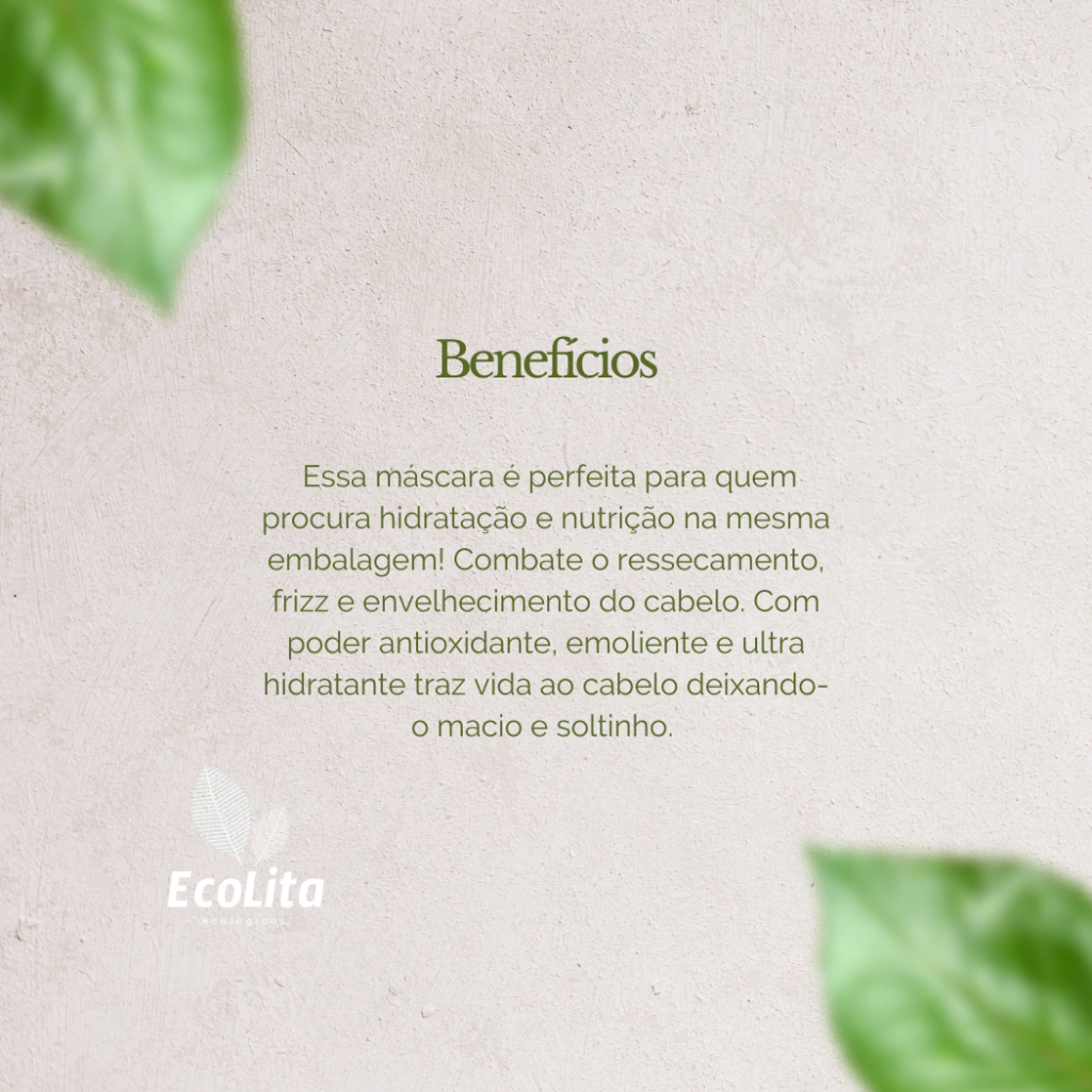 Benefícios: Essa máscara é perfeita para quem procura hidratação e nutrição na mesma embalagem! Combate o ressecamento, frizz e envelhecimento do cabelo. Com poder antioxidante, emoliente e ultra hidratante traz vida ao cabelo deixando-o macio e soltinho.