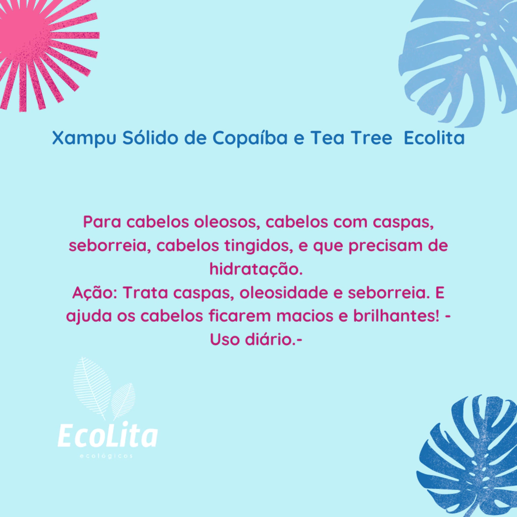 Composição: Cera BTMS, Álcool cetílico, manteiga de cacau, manteiga de manga, óleo de coco extravirgem, óleo essencial de copaíba, óleo essencial de tea tree (melaleuca).