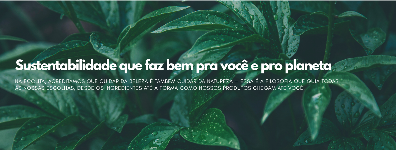 Na Ecolita, acreditamos que cuidar da beleza é também cuidar da natureza — essa é a filosofia que guia todas as nossas escolhas, desde os ingredientes até a forma como nossos produtos chegam até você.