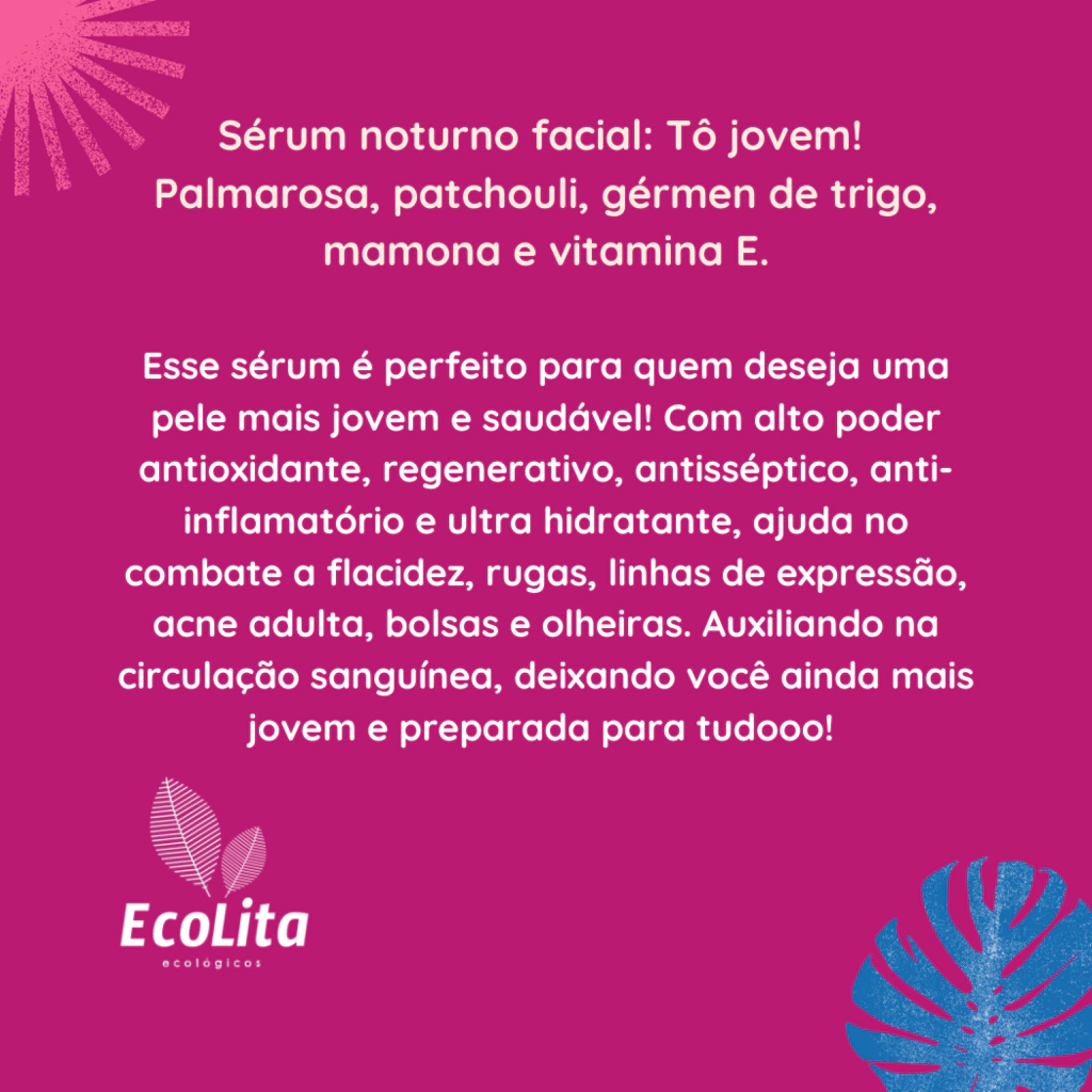 Com óleos vegetais puros e essenciais altamente nutritivos, este sérum age enquanto você dorme, regenerando, hidratando e devolvendo a firmeza e o viço natural da pele. Acorde com um glow renovado, maciez e aparência mais jovem todos os dias! ✨